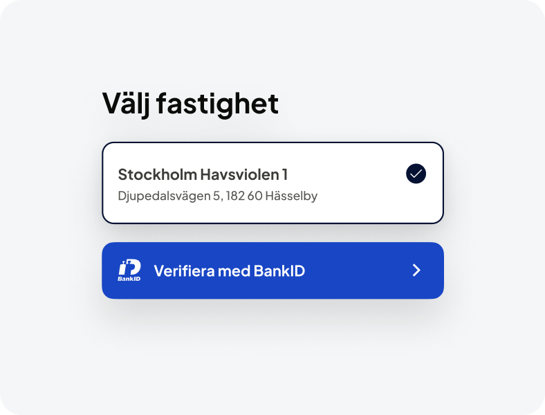 Alla privatägda hus har ett Bovra Fastighetskonto redo för nuvarande ägare. Du verifierar ditt ägande av fastigheten enkelt med BankID.