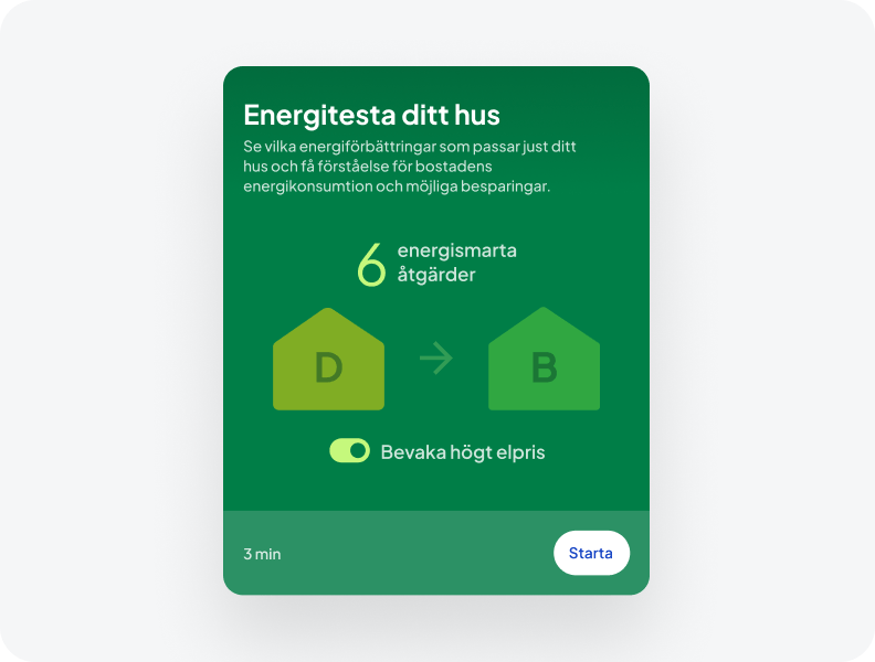 I Bovras energisektion energitestar du och får rekommenderade åtgärder för just ditt hus. Se energi- och kostnadsbesparingar per åtgärd, ny energiklass och mer.